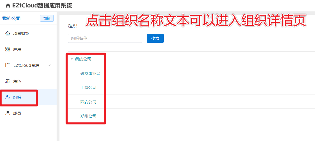 一个项目会自动生成一个默认根组织(不能删除),可以给每个组织添加成员,添加设备,组织下可以创建子组织,组织可以排序,可以修改组织名称,可以复制组织URL链接(这样用户可以快速登录到该组织应用详情页)。提示:点击组织名称可以进入该组织详情页。