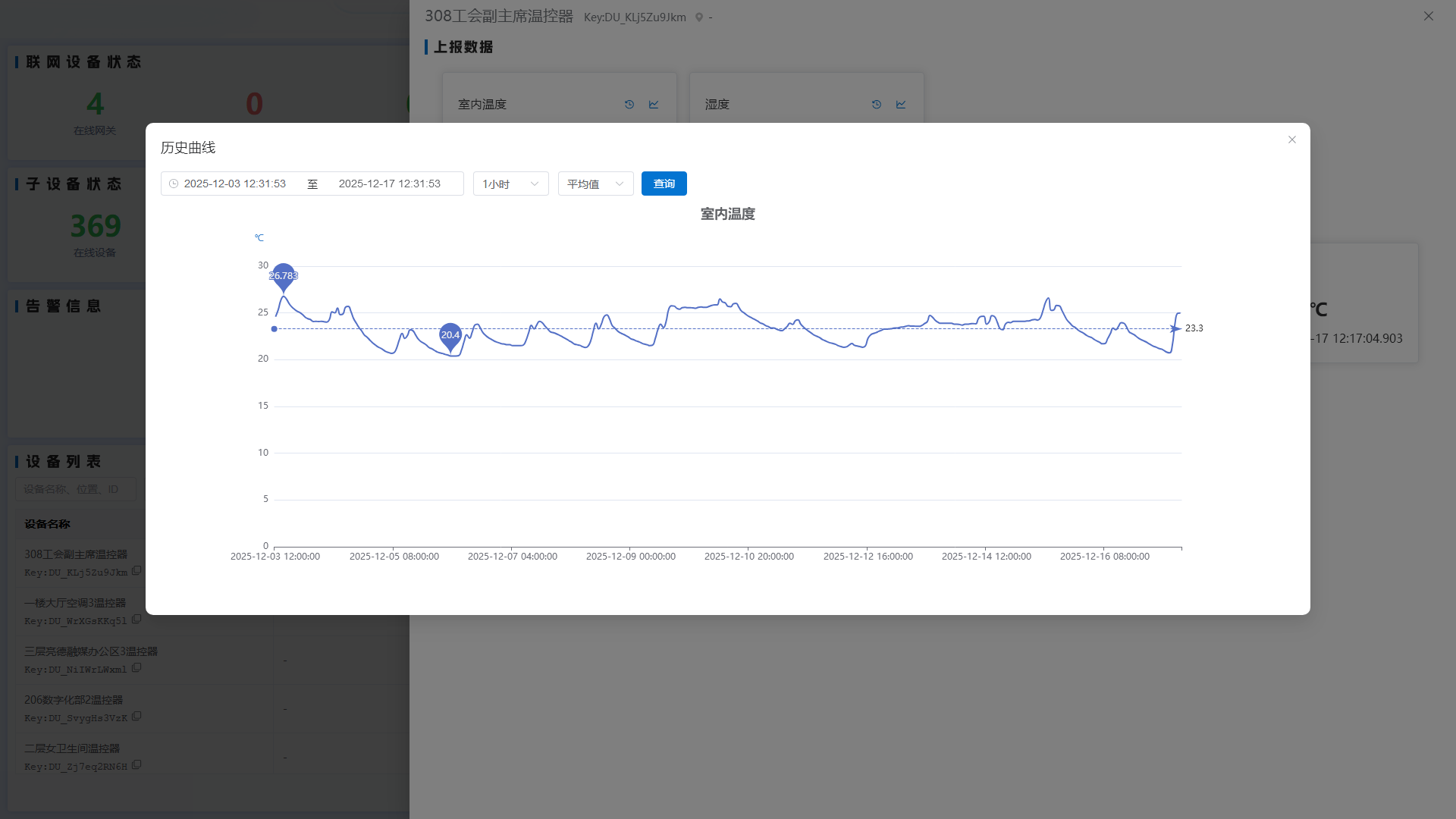 详情:弹出设备详情页,可以查看设备实时和历史数据,也可以下发控制